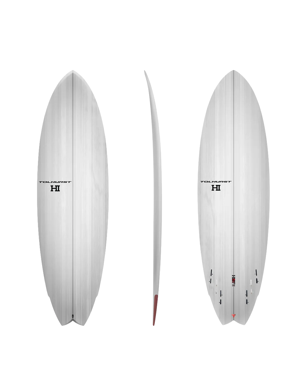 | 5'10" | White/ Red | Red | 19 3/4" | 2 9/16" | 32L | 3+3FCS | Matte |