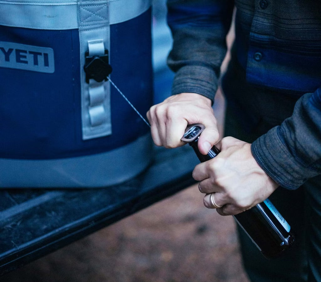 Keep your multitools or bottle openers within arm’s reach with the MOLLE Zinger. The MOLLE Zinger easily attaches to your YETI® Hopper® HitchPoint™ Grid. Its retractable cord is made from braided bomber cord for maximum strength and durability. Add on a wide variety of field tools to the flat split ring, from flashlights to clippers. Don’t get caught empty-handed in the field — keep the MOLLE Zinger close by. MOLLE Zinger comes with YETI Bottle Key.